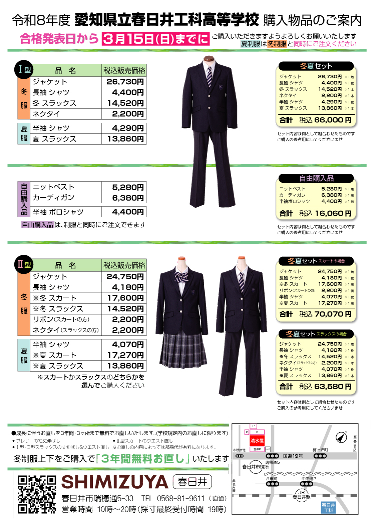令和8年度 愛知県立春日井工科高等学校 制服のご案内