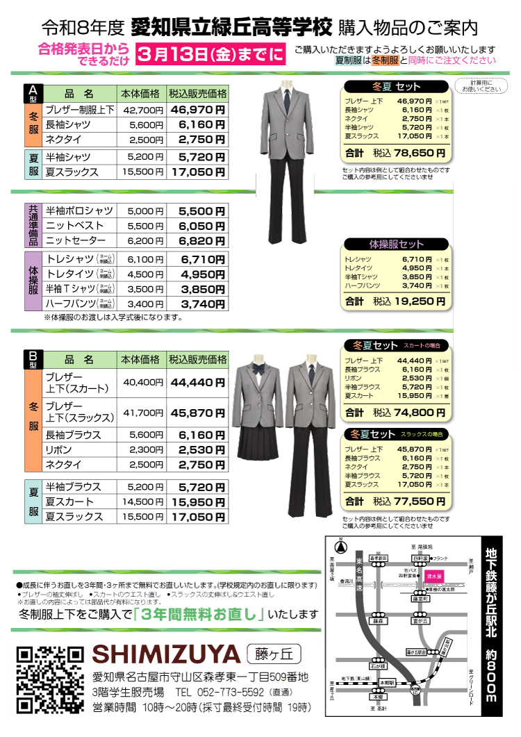 令和8年度 愛知県立緑丘高等学校 制服のご案内
