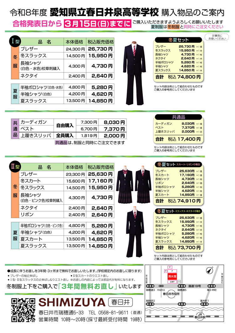 令和8年度 愛知県立春日井泉高等学校 制服のご案内