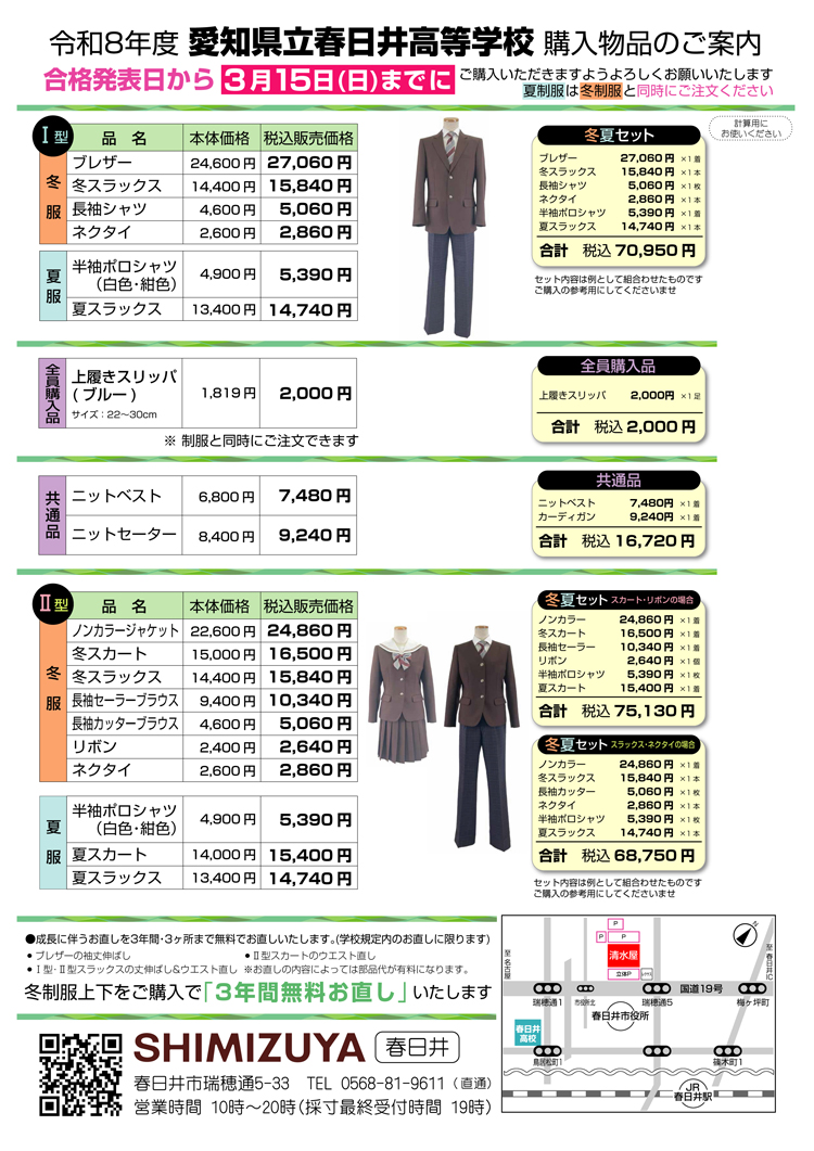 令和8年度 愛知県立春日井高等学校 制服のご案内